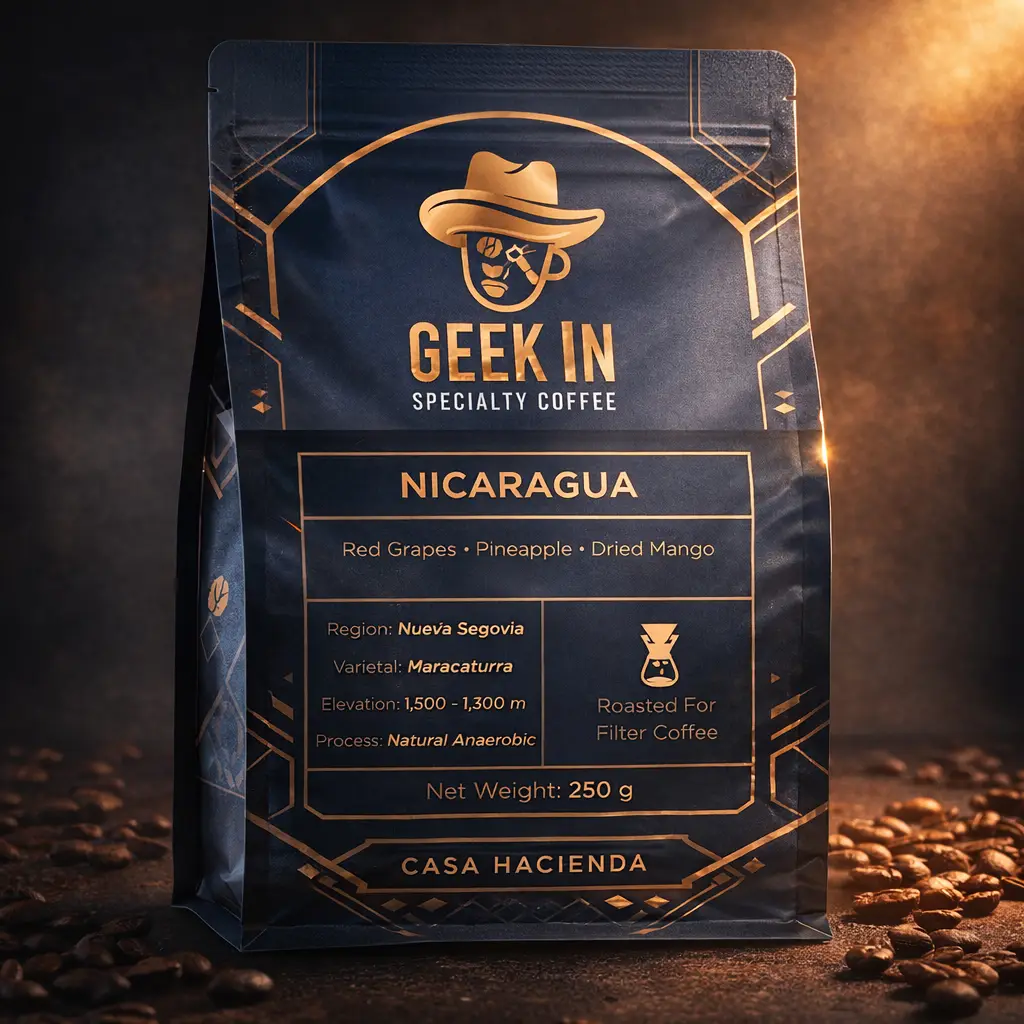 Premium single origin coffee from Nicaragua featuring smooth dark chocolate, roasted hazelnut, and brown sugar notes, freshly roasted for a rich and balanced flavor.