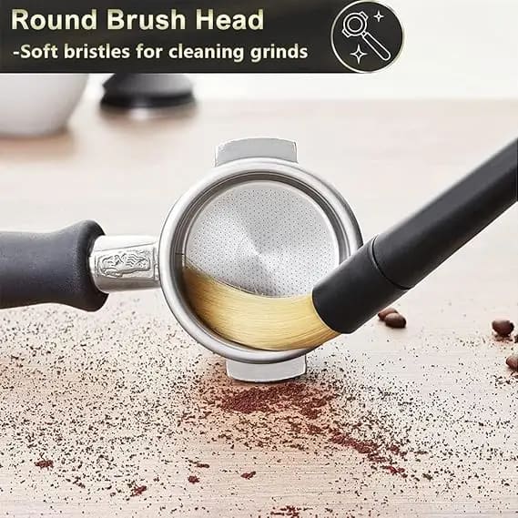 Featuring two removable brush heads, the flat PP bristle head is perfect for cleaning countertops, grinder bodies, and machine surfaces. The round PET bristle head is soft yet durable, removing coffee grounds without scratching delicate components.