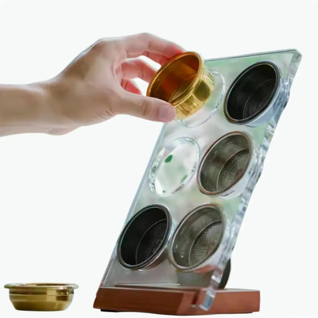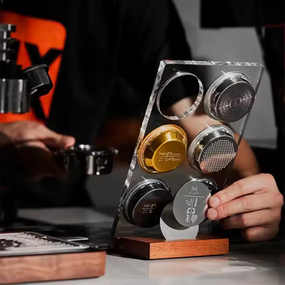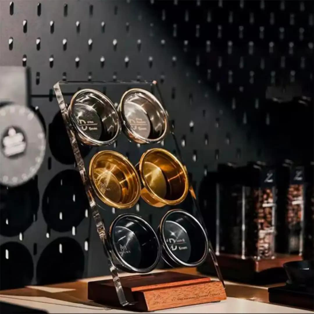 Keep your espresso workflow organized with the Coffee Basket Holder, designed for both home baristas and professional cafés. This durable accessory provides a secure and stable place for your coffee baskets, ensuring efficiency and ease during coffee preparation.
