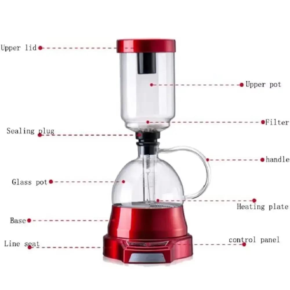 Bring the artistry of coffee brewing into your home with the Diguo Electric Siphon Coffee Maker 2-in-1, a perfect blend of modern design and professional performance. Crafted from durable glass, stainless steel, and high-grade plastic, this electric siphon brewer delivers precise temperature control and a visually stunning brewing process.