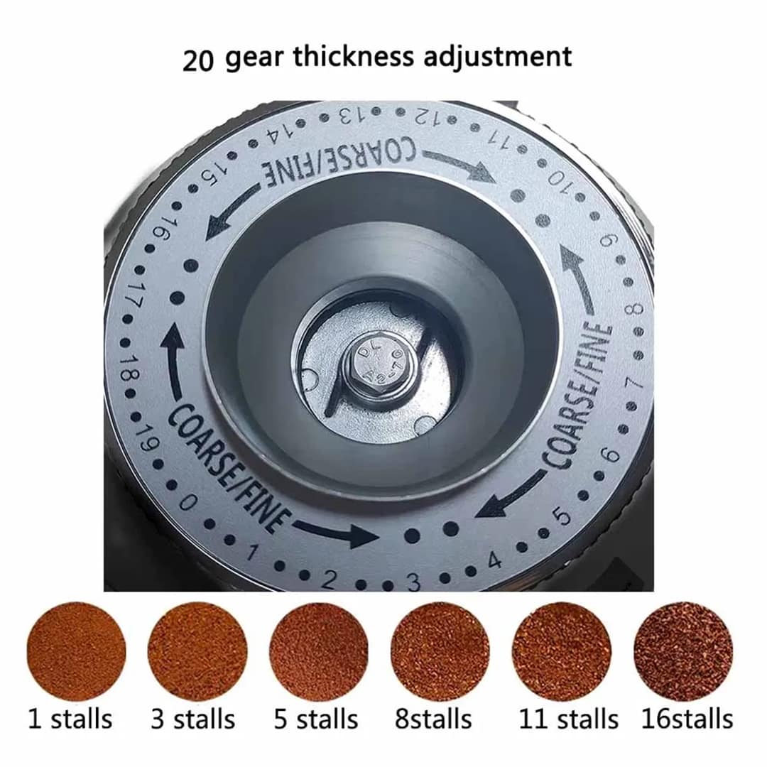 The grinder features a 74mm flat stainless steel gear, providing precise and uniform grinding. For enhanced durability and performance, the gear can be upgraded to titanium for an additional 250 AED. This ensures long-lasting operation in both commercial and home environments.