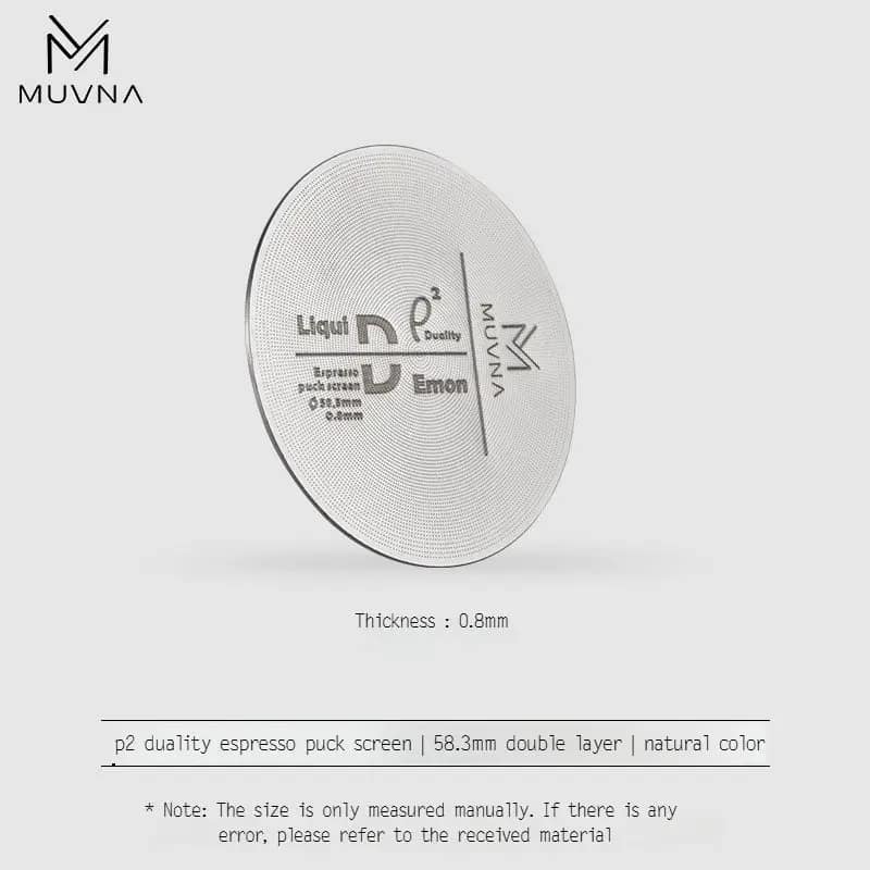 Elevate your espresso preparation with the MUVNA Duality 58mm Espresso Puck Screen, designed for coffee enthusiasts and professional baristas. This ultra-thin 0.8mm stainless steel screen promotes even water distribution, ensuring balanced and flavorful espresso shots every time.