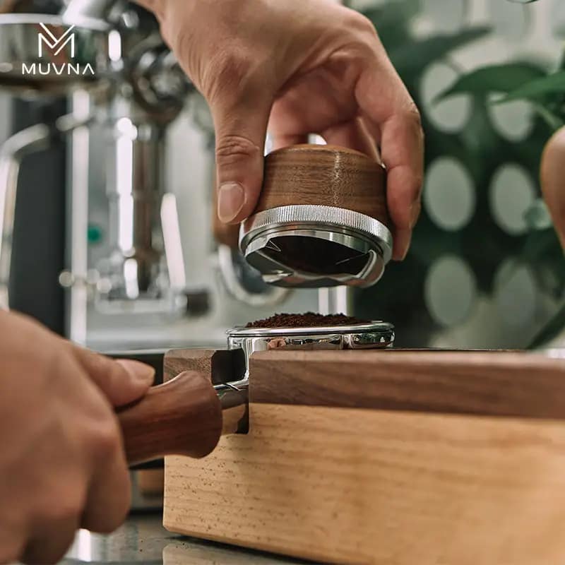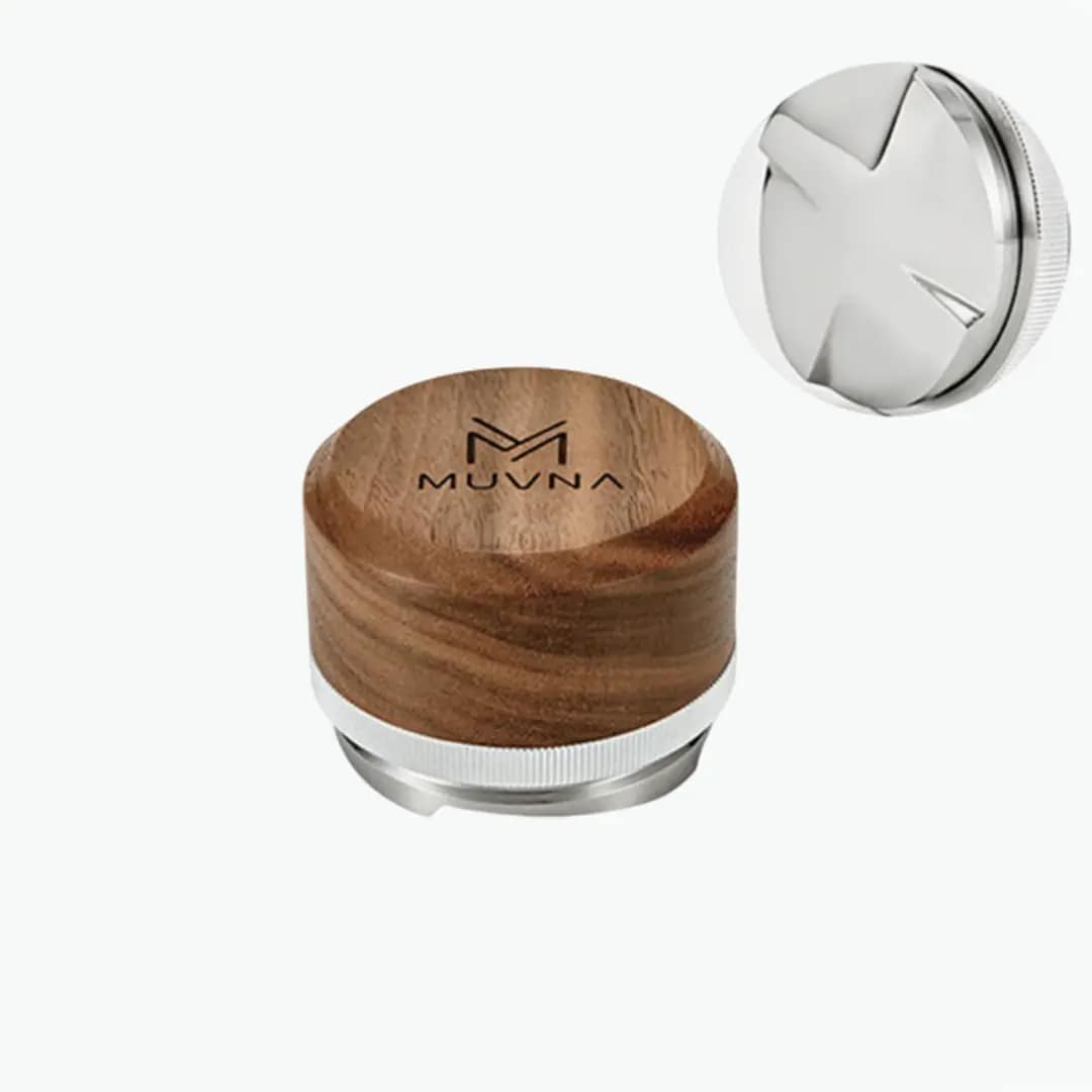 MUVNA Espresso Walnut Handle Stainless Steel Base Distributor 58mm