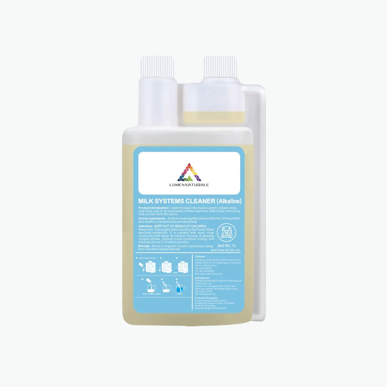 Usage is simple: mix 30ml with 500ml warm water, run through the milk system or soak removable parts for 5–10 minutes, then rinse thoroughly. Regular use guarantees optimal performance and prevents blockages, making it essential for any coffee environment.