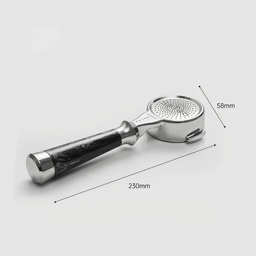 With a standard 58mm size, this portafilter is compatible with a wide range of espresso baskets and accessories, making it ideal for both home enthusiasts and professional coffee shops. The ergonomic handle offers a comfortable grip, reducing fatigue during extended use.