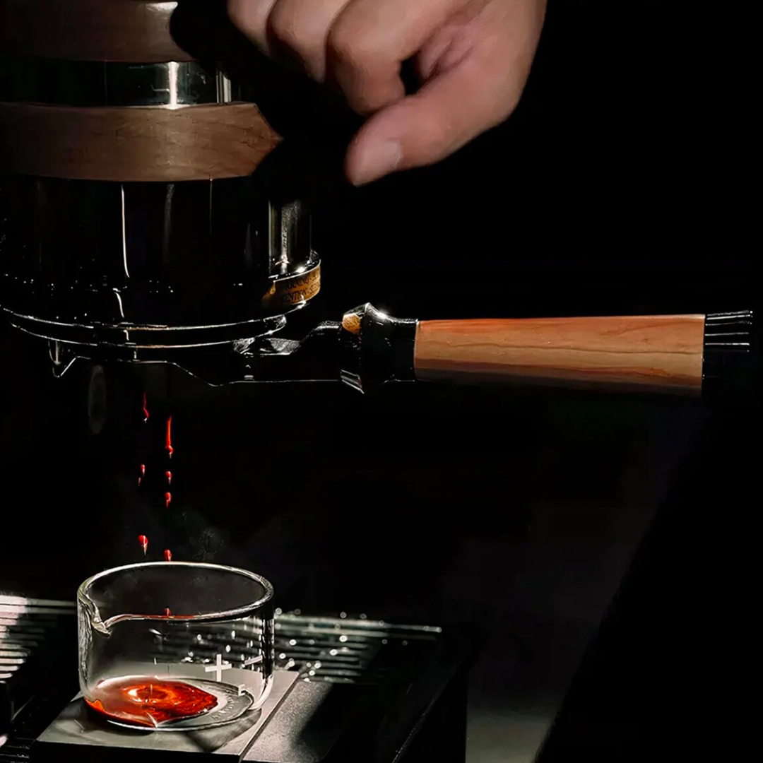 The portafilter features a high-quality metal head that ensures even water distribution during extraction. In addition, the ergonomic wooden handle provides a comfortable grip and excellent control during tamping and brewing. The combination of solid construction and smooth handling makes it suitable for daily use in both home and café environments.