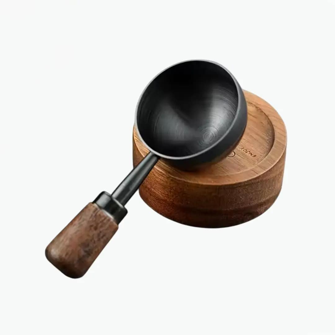 Designed for baristas and home coffee enthusiasts alike, this measuring spoon provides consistent portioning, improving the taste and balance of your beverages. Its elegant walnut handle not only adds style but also ensures a comfortable grip during use.