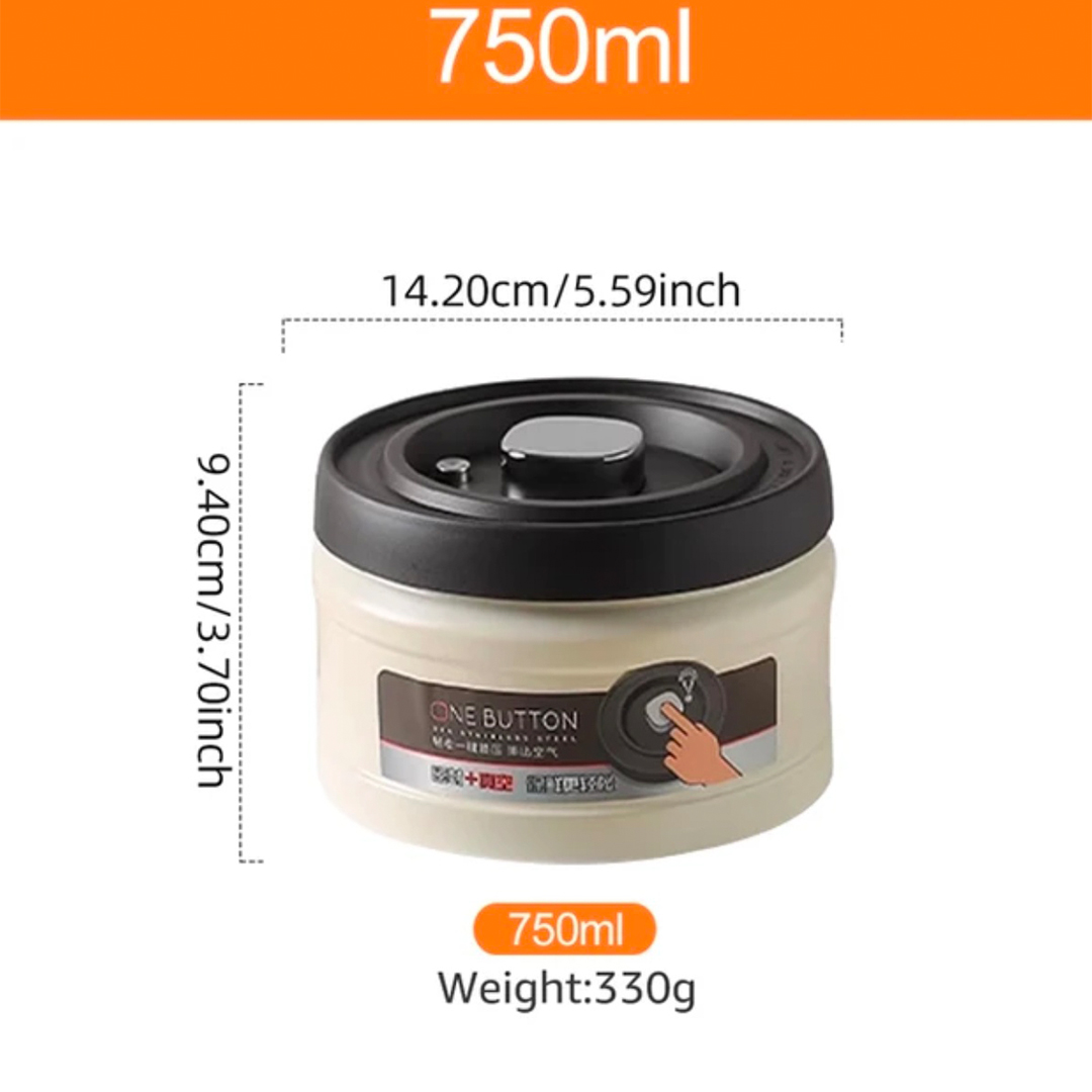 Vacuum coffee storage 750g with airtight sealing system to preserve coffee freshness, aroma, and flavor for daily brewing.