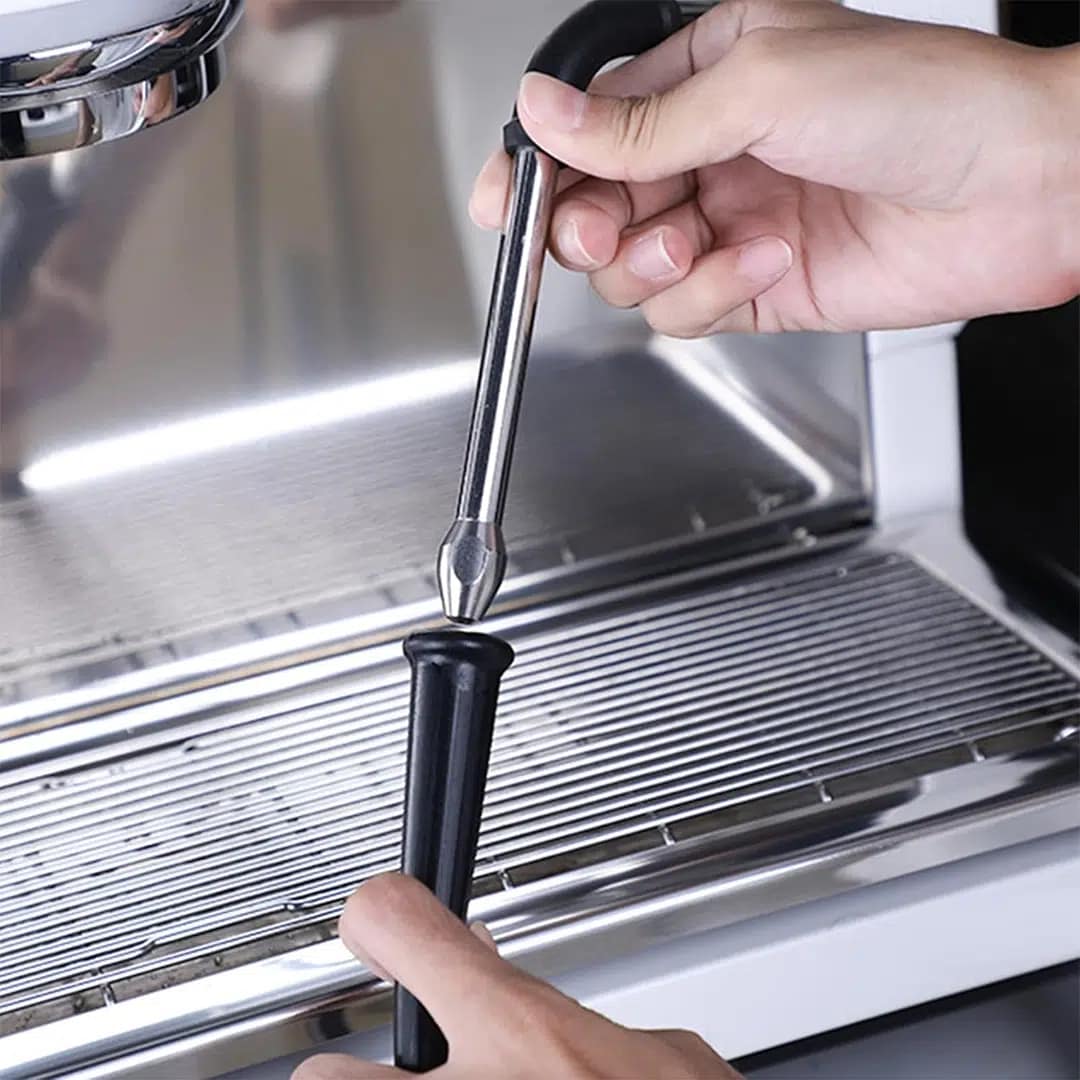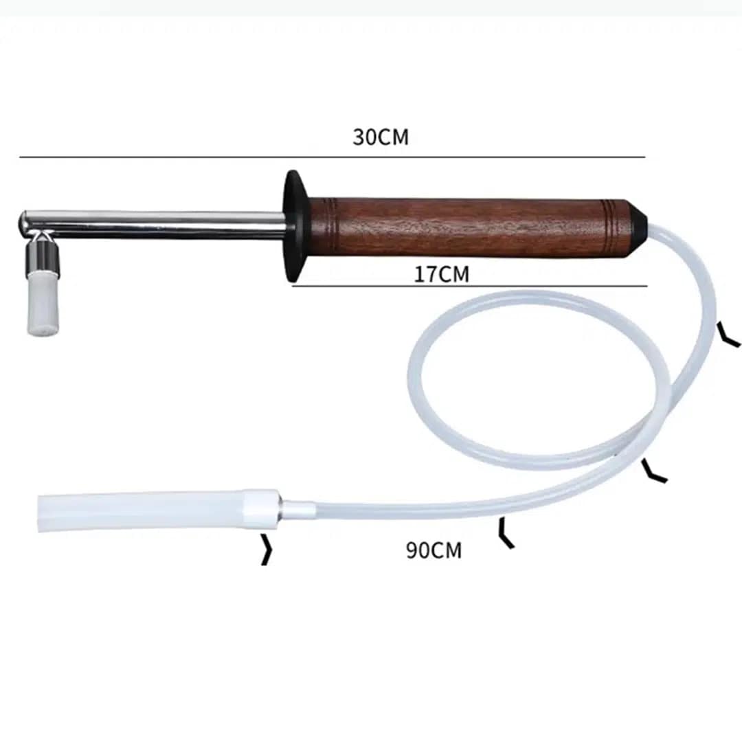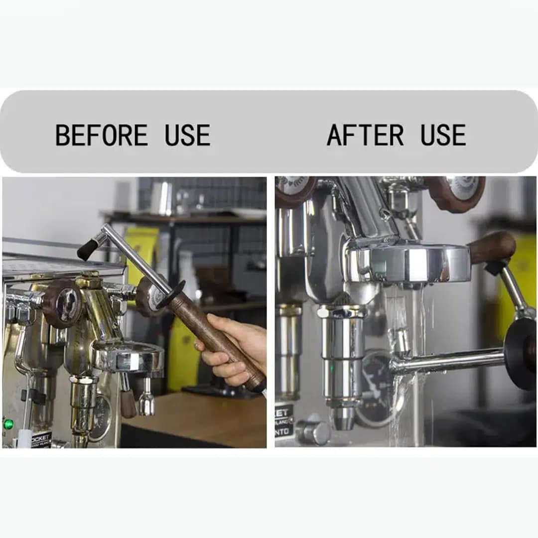 Crafted from premium black walnut wood, food-grade silicone, and durable nylon, the brush is strong, heat-resistant, and comfortable to use. Additionally, its long wooden handle and flexible 90cm silicone tube make it easy to reach narrow spaces. This feature allows deep cleaning without extra effort, making it perfect for cafés, roasteries, and home setups.